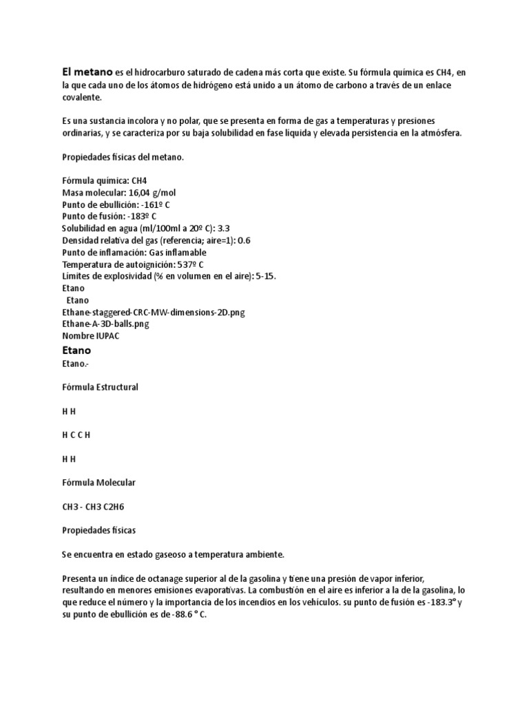 El Metano Es El Hidrocarburo Saturado De Cadena Mas Corta Que