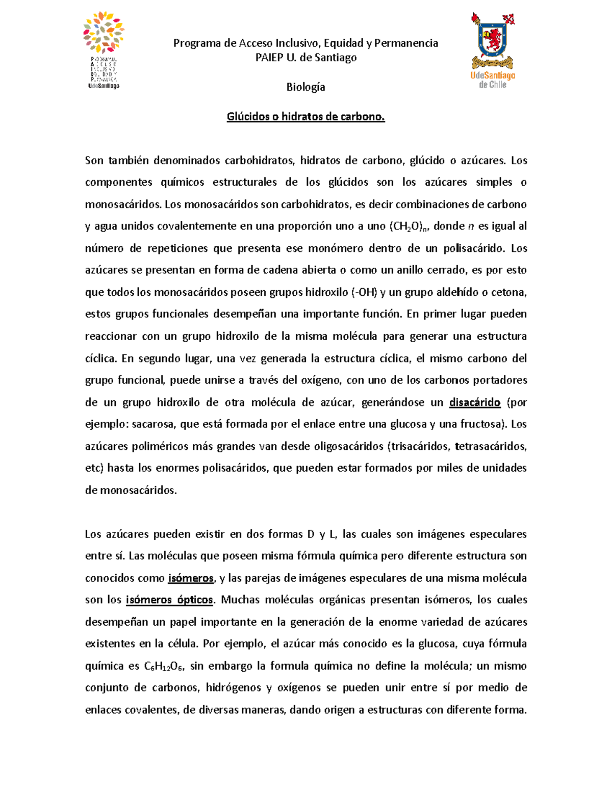 Glucidos Usach Studocu