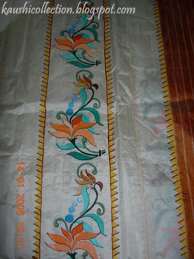 Hand painted fabric painting designs on mekhela sador