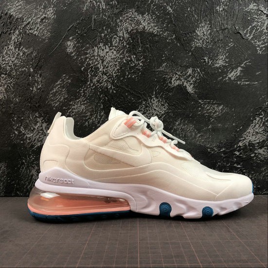 Womens Nike Air Max 270 React White Pink Blue Blanc Rose Bleu