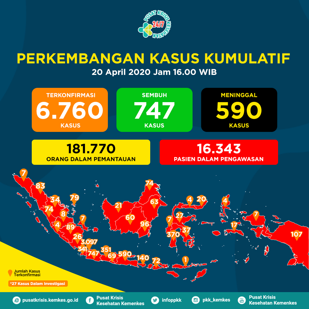 Update Corona Di Indonesia 20 April 2020 Kasus Baru Turun Drastis