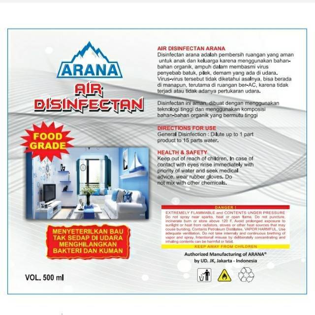 Arana Air Disinfektan Spray 500ml Shopee Indonesia